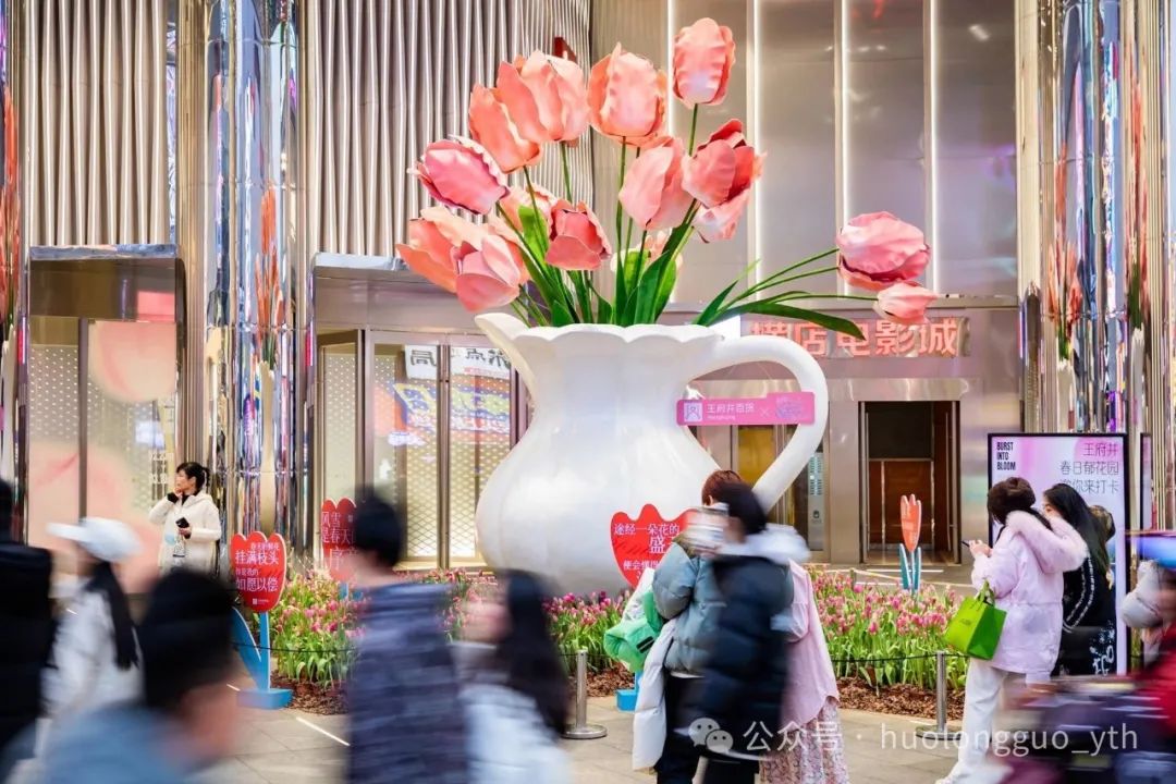 2月26日,长沙店于外场东北大堂以郁金香与花瓶为元素搭建了一处巨型郁金香美陈,并于美陈下用郁金香花束铺就了一片郁金香花海,在春风的吹拂下,美陈安排显得灵动又优美,吸引了不少往来主顾的打卡。因长沙店的主顾们被称为“王亲”,这里也称为长沙艾弗森贝博ballbet官网的春日“郁”花园。