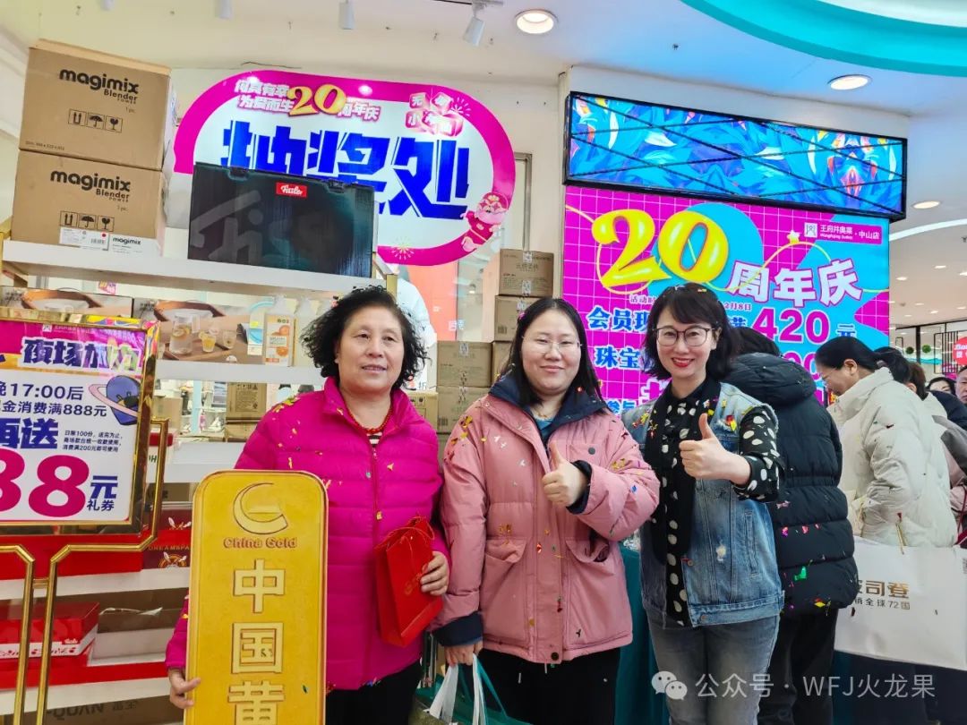 满额抽奖是呼市中山路店的经典热门运动。本次店庆奖品的投放力度、数目、奖品价值均创历史之最,百分百的中奖率、逐日一根5g金条吸引消耗者的眼光,领券台前一到领奖时间连忙排起长队,店庆时代共计发放奖品数目1万+。