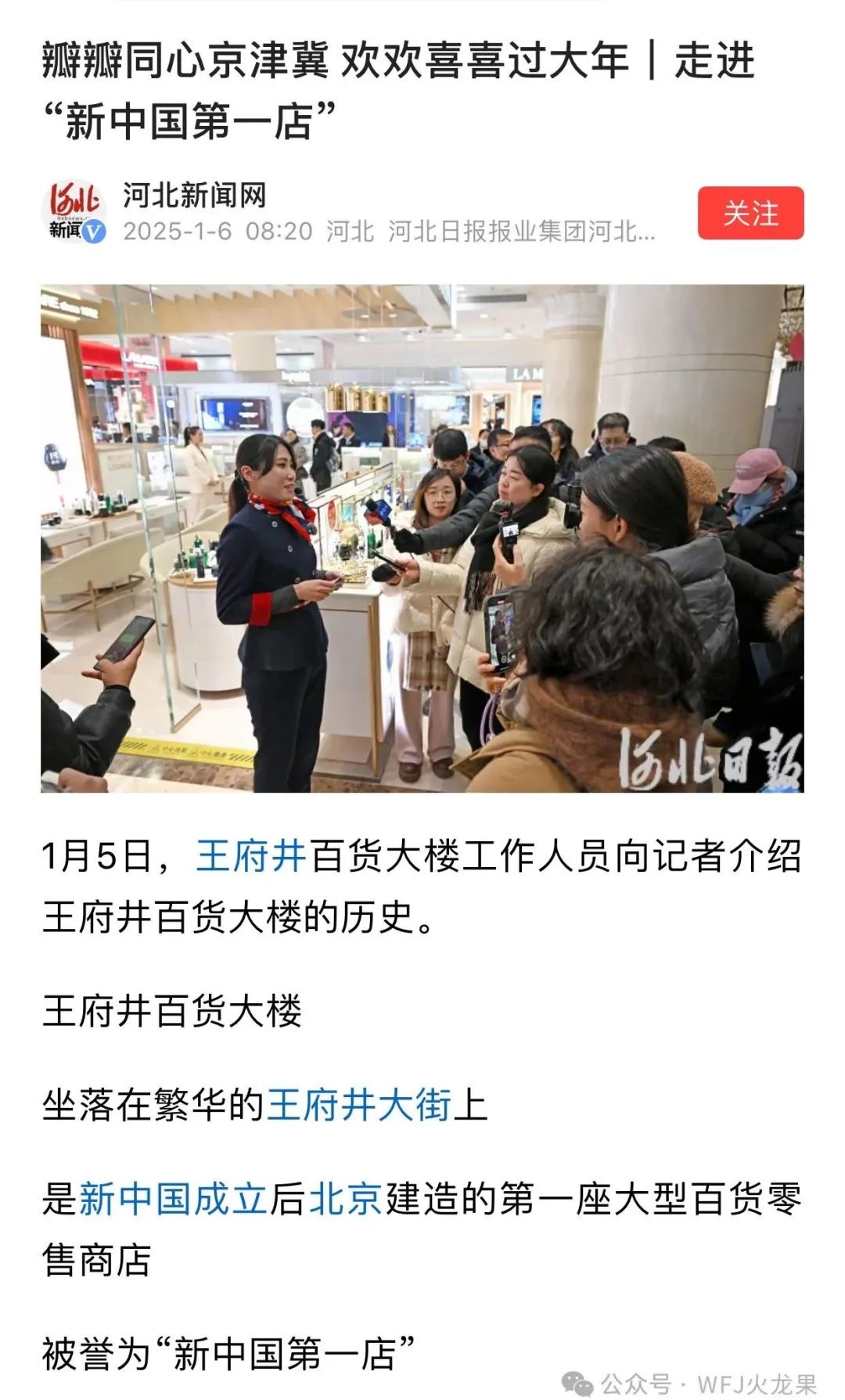 1月5日,百货大楼迎来“瓣瓣同心京津冀 欢欢喜喜过大年”主题宣传团结采访媒体团,由新华社、北京日报、新京报、经济日报、天津日报、河北日报等22家中央和京津冀三地媒体加入报道。重点相识百货大楼推动古板立异升级和两节时代增进消耗等亮点营销运动情形。