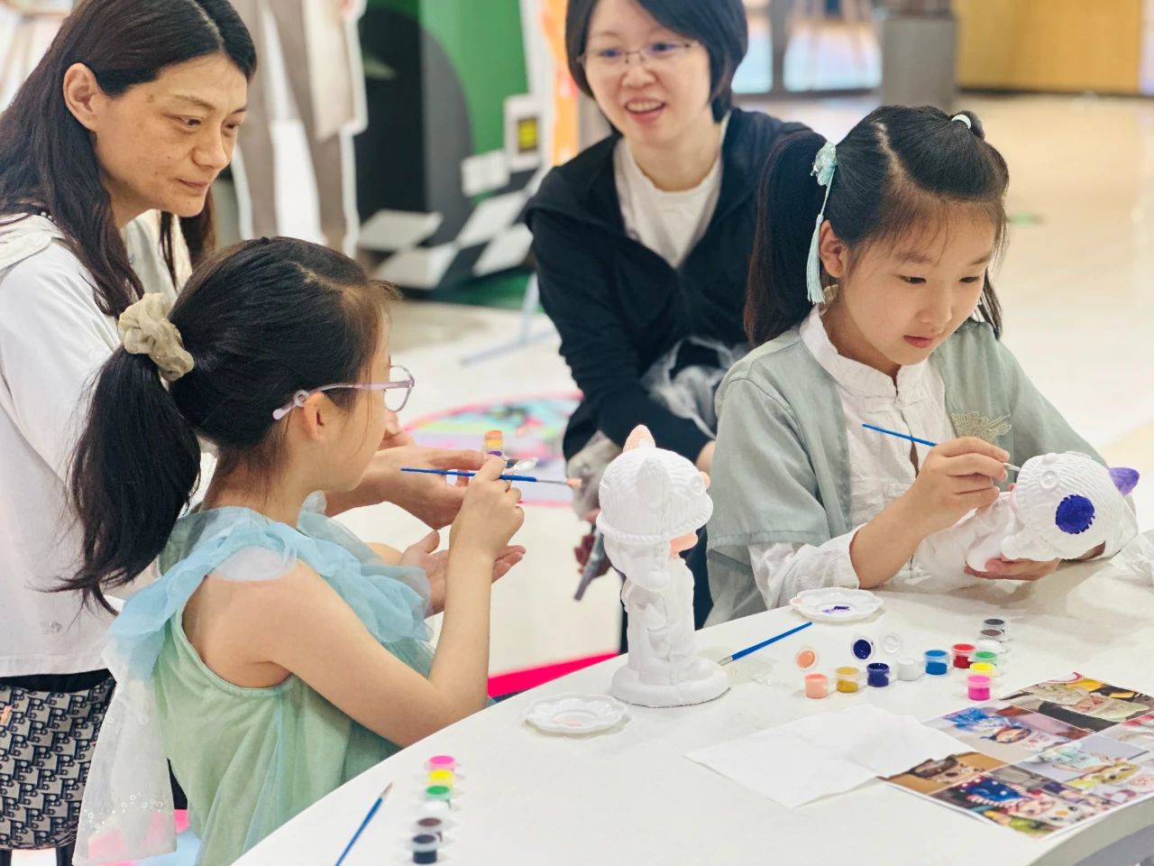 »¥ÏÂÊÖ×÷ÌåÑéÇøÄÚ£¬¾ÞϸÅóÙÃÇÔÚרҵÏÈÉúµÄÖ¸µ¼Ï£¬ÖÆ×÷ϸÄåµÄ¶¯ÂþÌÕÄà°Ú¼þ¡¢Í¿Ñ»Á¹Ã±¡¢¿ÖÁúÒæÖÇÆ´¼ÓÈë°ìµÈ¡£Ç××Ó¼ÒÍ¥Ò»ÆðÏÂÊÖ£¬ÅäºÏÏíÊÜ´´×÷ÐËȤ£¬Ôö½øÇ××Ó¼äµÄÇéÐ÷£»¶þ´ÎԪϲ»¶ÕßÃǽ»Á÷ÊÖ¹¤¼¼ÇÉ£¬½áʶ־ͬ־ºÏµÄÅóÙ¡£