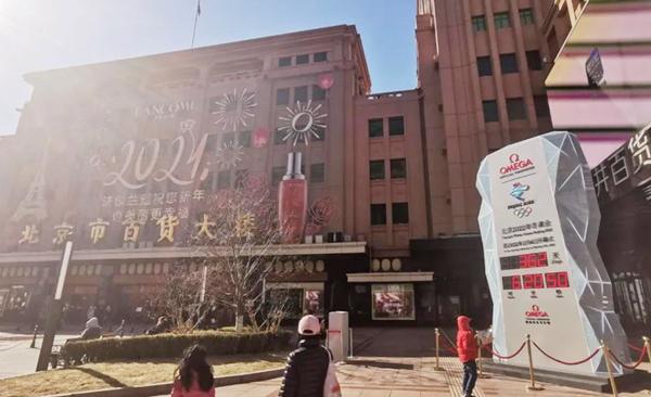冬奥会倒计时钟亮相百货大楼门前